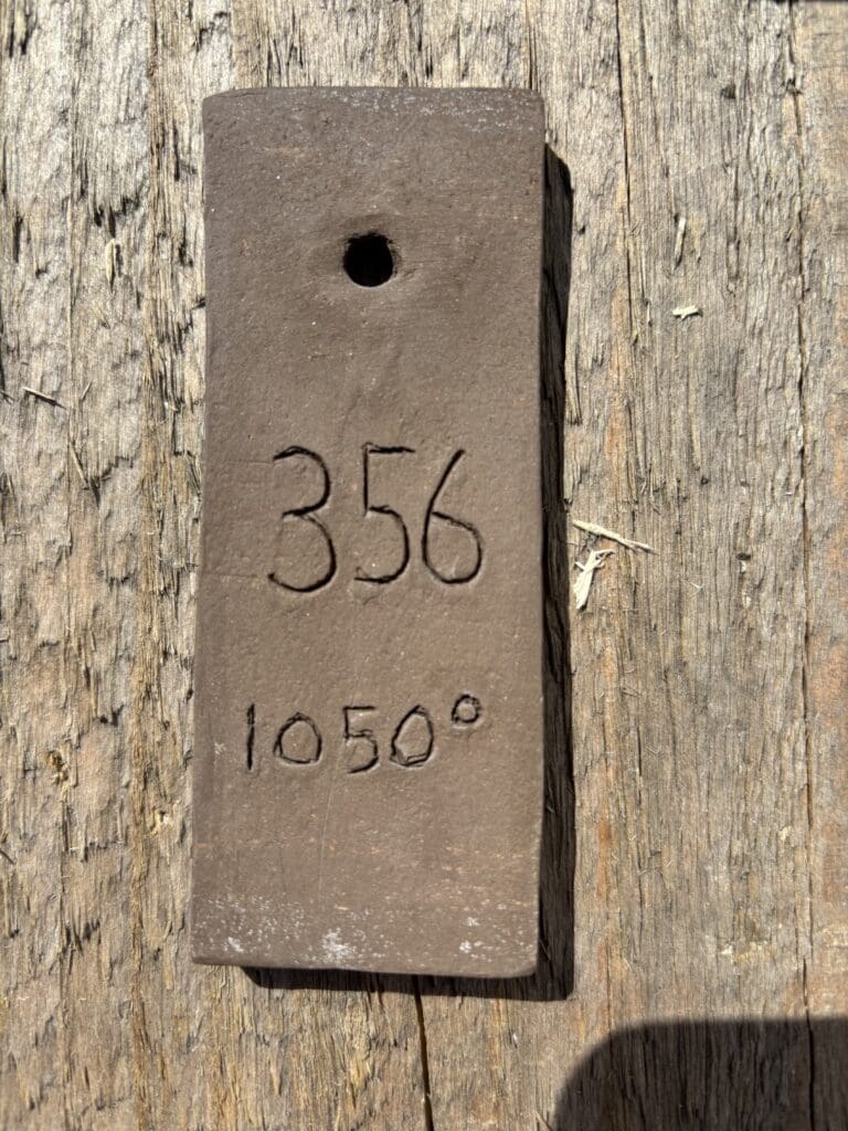 Provet på bilden är bränd i 1050 grader. Den är av scannad och mycket förstorad. Färgåtergivningen varierar på olika webbläsare men ger en vägledning om färgen. Olika nyanser har leran vid olika bränn temperaturer.