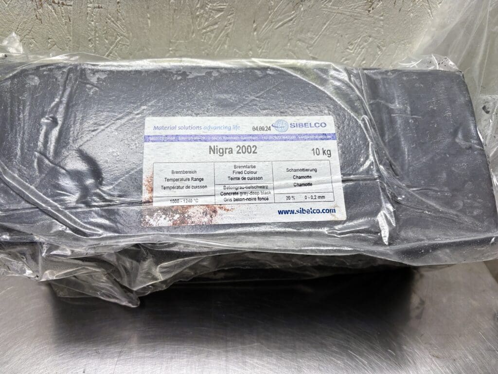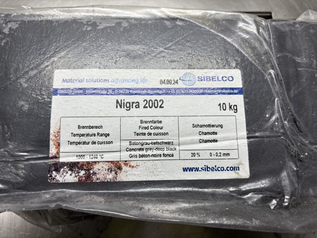 Nigra 2002 är en svart stengodslera tillverkad av Sibelco, känd för sin höga kvalitet och mångsidighet inom keramik. Denna lera är särskilt uppskattad för sin intensiva svarta färg vid bränning vid högre temperaturer.