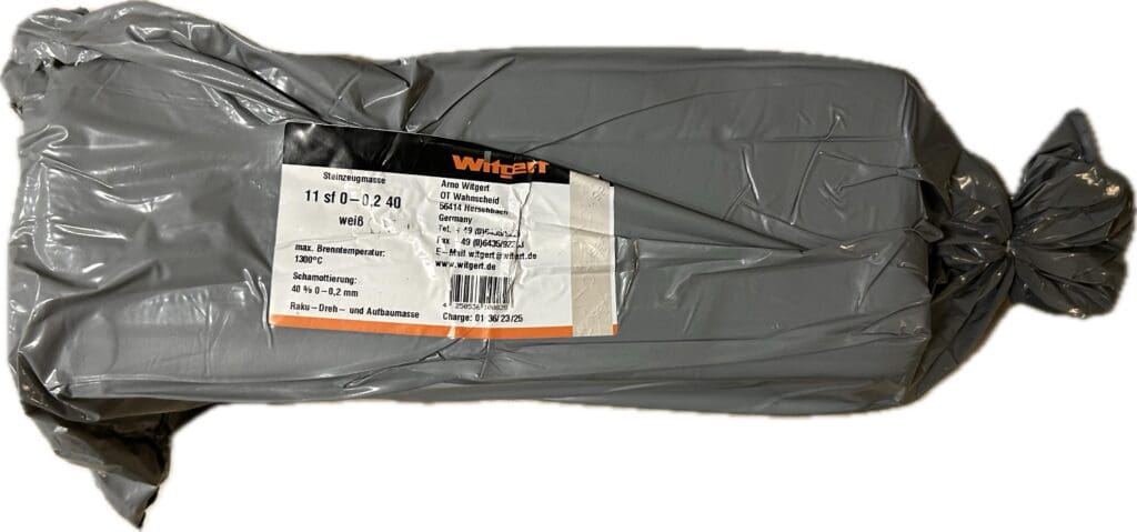 Witgert 11 är en vit stengodslera med 40 % chamotte 0–0,2 mm. Passar till drejning för Raku, skulptering och handbyggen för små alster. Bränns vid 1200–1300 °C.