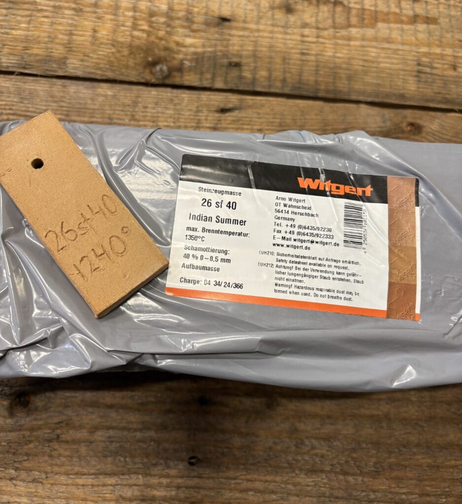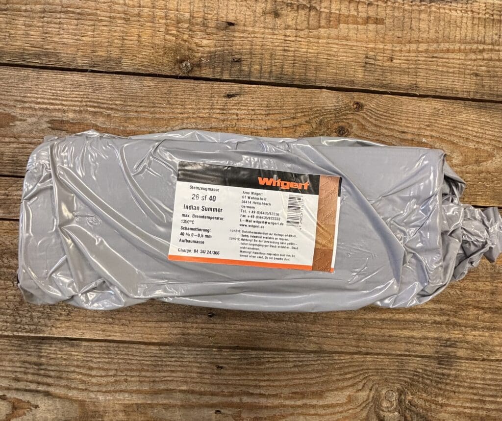 Witgert Indian Summer 26sf 40 – Stengodslera med 40 % chamotte. Grov, formstark lera med varm gulröd ton. Perfekt för skulptur, handbygge och större keramikobjekt där stabilitet och struktur är avgörande. Bränns vid 1000–1350 °C.